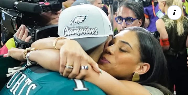 Following the Philadelphia Eagles’ victory in Super Bowl LIX, quarterback Jalen Hurts shared a deeply emotional moment with his fiancée, Bryonna “Bry” Burrows. After the game, Hurts and Burrows were seen sharing a heartfelt kiss on the field, celebrating both the Eagles’ 40-22 win over the Kansas City Chiefs and their enduring relationship.