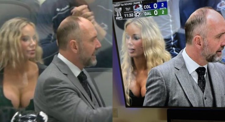 Social media lit up not just because of the on-ice heroics, but because of a blonde fan sitting directly behind the Stars’ bench. She wasn’t wearing a jersey, but she still managed to capture the full attention of viewers during a broadcast segment focused on head coach Pete DeBoer’s Game 7 record. While DeBoer’s playoff success was being highlighted on screen, all eyes, and tweets, were locked on what many called the “scene-stealer” just behind him.