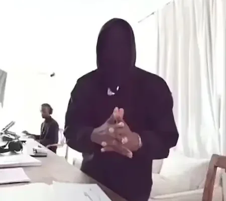 Wearing an all black outfit with a black mask covering his face, the 47-year-old could be seen talking about Kim and their current custody battle for their four children.
