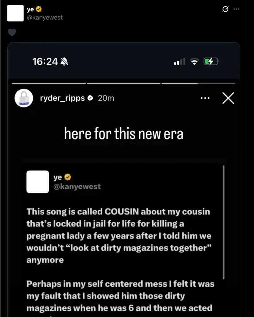 This comes after another post he shared online about concerning remarks he made about a incestous relationship he claimed to have with his male cousin.