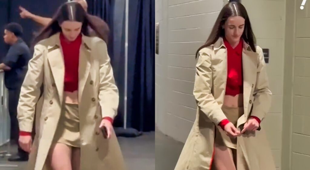 Clark, who added four rebounds and six assists in 32 minutes on the floor for Indiana, pulled up to the game in a trench coat, but she still showed off quite a bit, given that she also had a very short skirt on, while her stomach was also visible.
