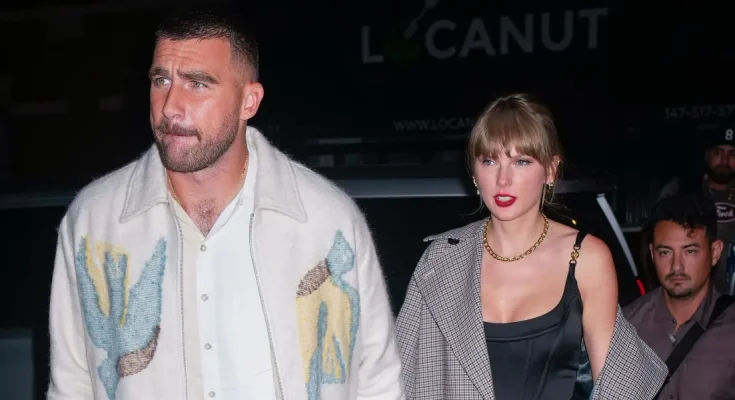 That evening, the songwriter wore an oversized gray blazer-style jacket, paired with sky-high maroon heels and a black handbag. The NFL star, seen beside her, sported a laid-back look with light blue jeans and a loose button-up shirt.