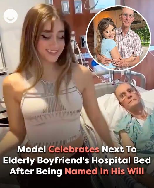 A young model has come under fire for posting a controversial video in which she dances gleefully next to her elderly boyfriend’s hospital bed, seemingly celebrating her inclusion in his will.