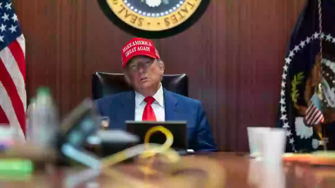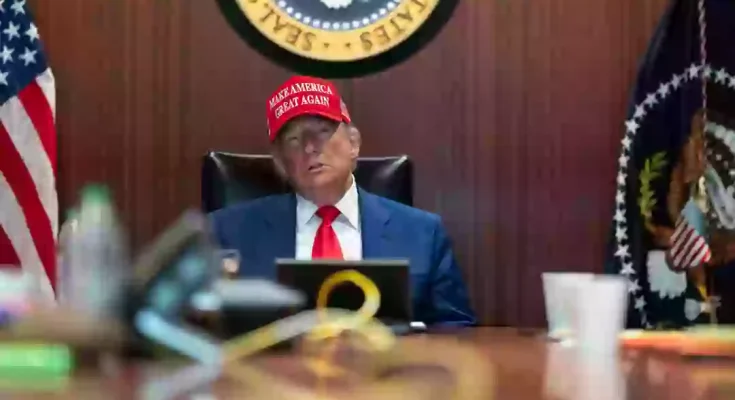 In the images, Trump can be seen donning his ‘Make America Great Again’ red cap, with Vice President JD Vance sitting beside him.