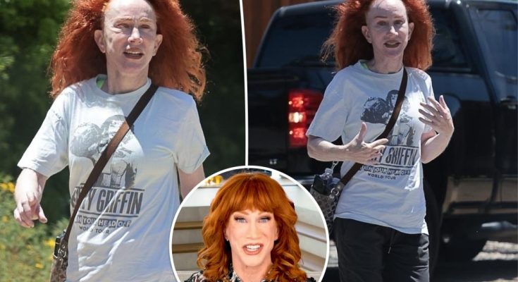 Kathy Griffin was photographed showing off her wild, natural hair and brand merch as she stepped out for a walk on Tuesday.