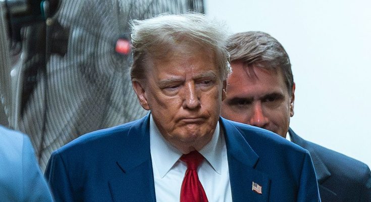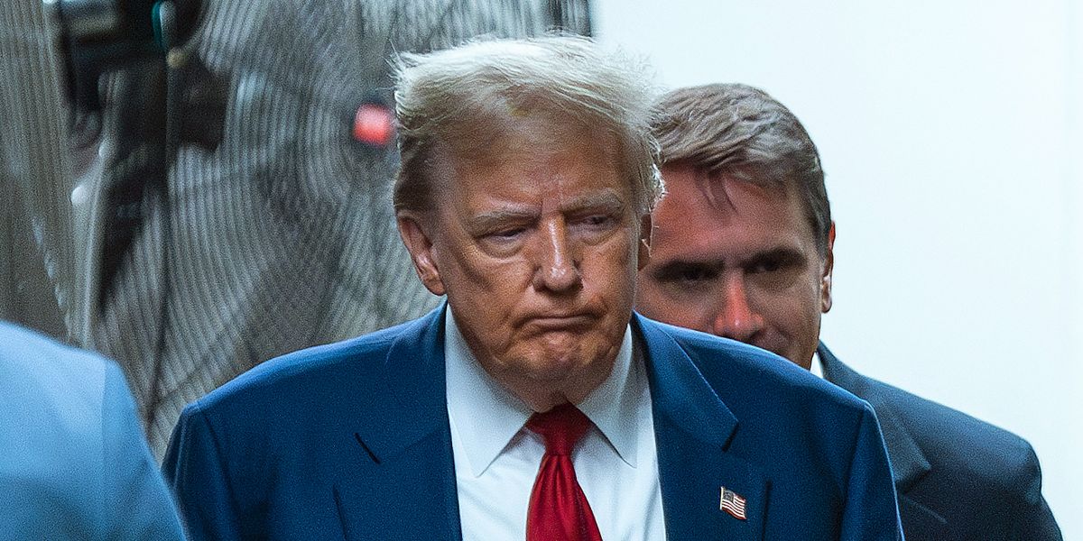 Donald Trump arrives to speak at the National Republican Congressional Committee (NRCC) dinner at the National Building Museum in Washington D.C., on April 8, 2025 | Source: Getty Images