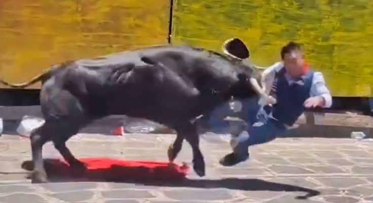 Either he forgot or did not know, but another raging bull was coming from behind in the area. The second one came in and destroyed the guy.