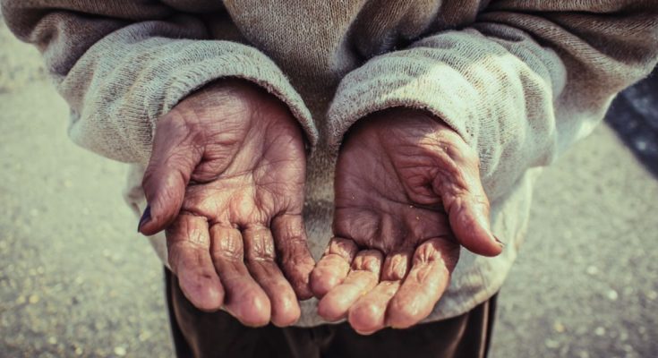 She held a torn piece of cardboard with “Hungry. Please help” written on it in shaky, uneven letters.