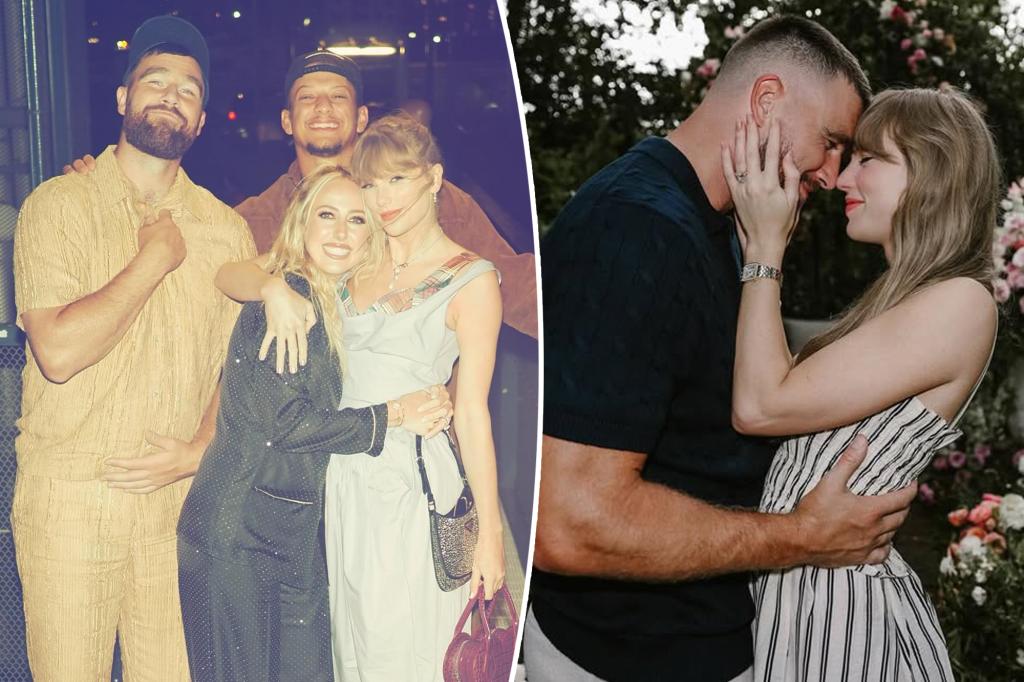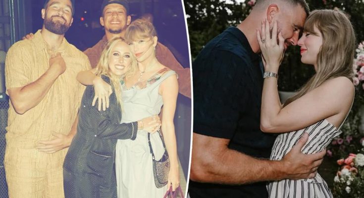 Brittany and Patrick Mahomes are celebrating the new chapter in Travis Kelce and Taylor Swift’s love story.