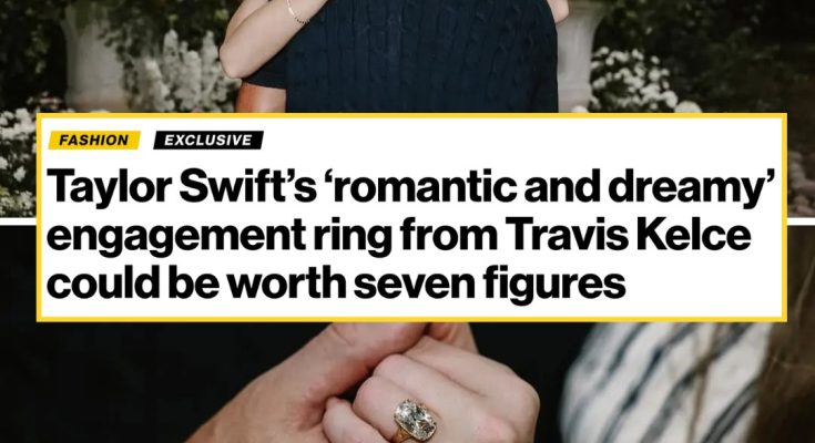 Taylor Swift and Travis Kelce announced their engagement on Tuesday, with the pop star showing off an enormous custom ring designed by the Kansas City Chiefs tight end himself.
