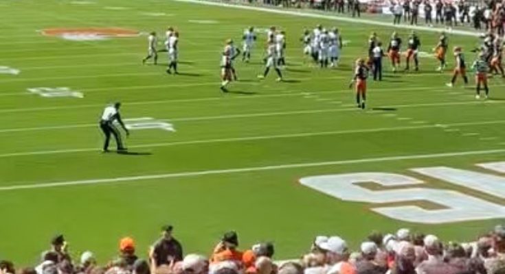 The on-field official was tasked with getting it off the field, grabbing it off the turf, and disgustedly throwing it on the sideline.