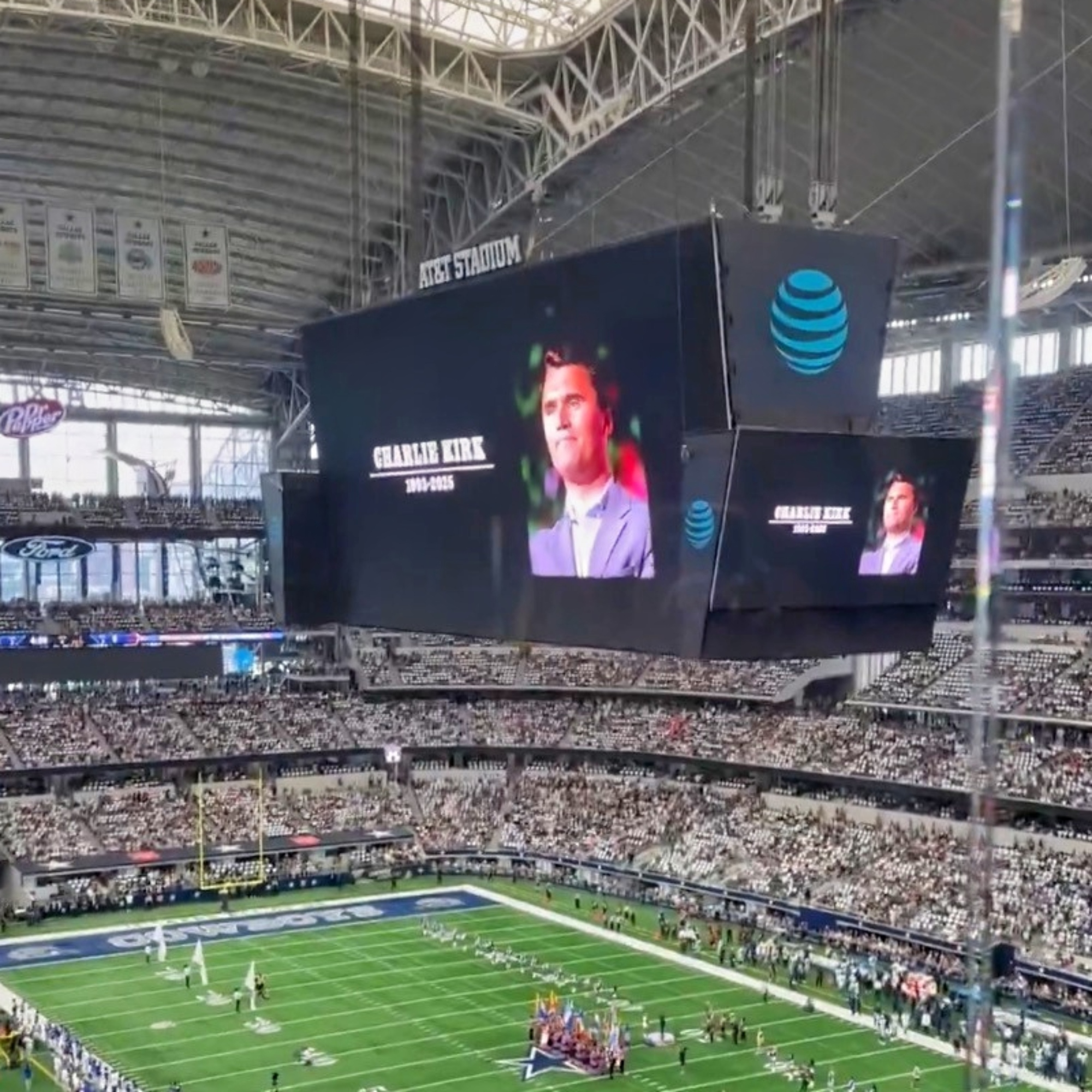 A moment of silence was held at AT&T stadium for Charlie Kirk at the #Cowboys #Giants game. You can hear the crowd reaction with the sound up. pic.twitter.com/KwZKWE3c18