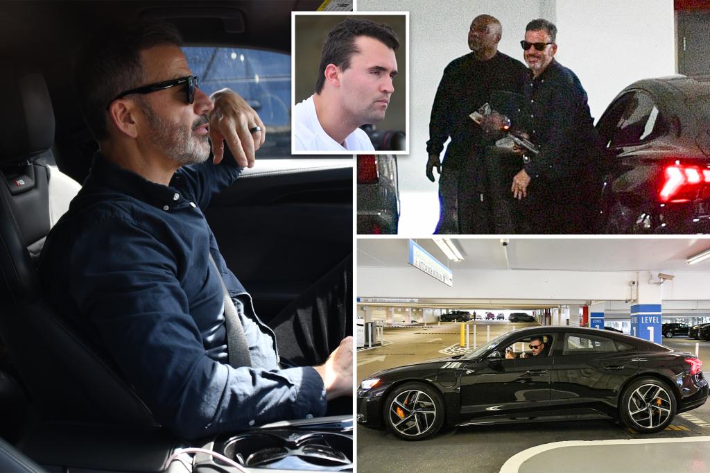 The “Jimmy Kimmel Live!” host, 57, was spotted in his sleek black Audi S8, wearing shades and flashing the sinister grin as he arrived at a Century City complex that houses several law firms, according to photos snapped by The Post.