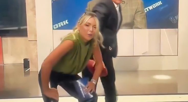 NFL Network’s Colleen Wolfe risked splitting her black leather pants on live TV during a demonstration of the Tush Push.