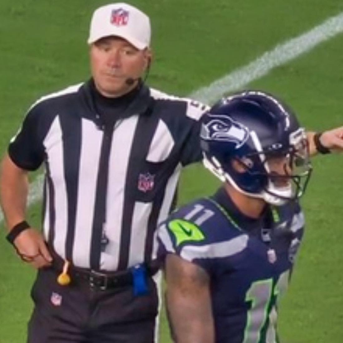 At one point in the fourth quarter, Smith-Njigba was called for holding to the tune of a 10-yard penalty and did not agree with the call. He was heard shouting, “That’s some bulls**t!” through the official’s microphone while walking past him.