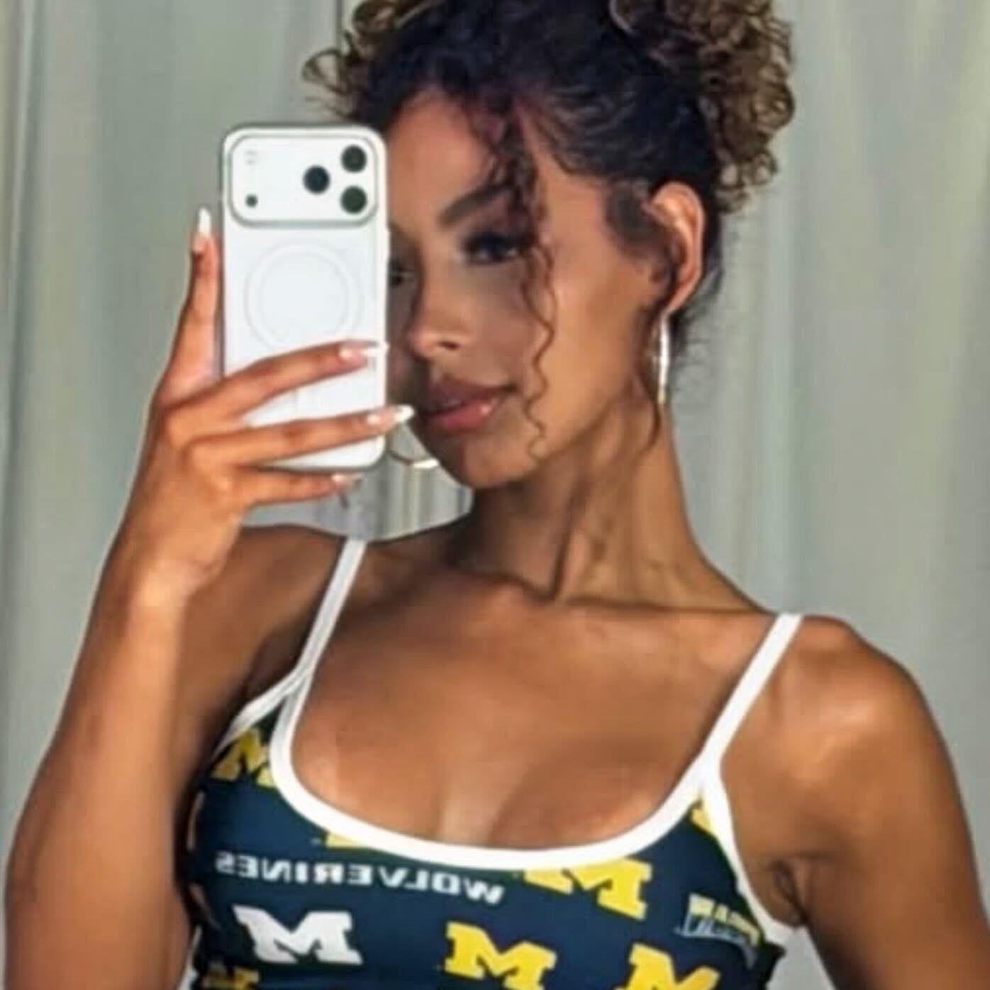 She took to X on Saturday to post a selfie of herself wearing a Michigan top and nearly see-through panties exposing her angry wolverine.