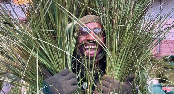 This grass prop dude said: “I can FINALLY let the cat out of the bag….or the grass I flew all the way from Philly to be grass in the Bad Bunny halftime show 🌿 AMA”
